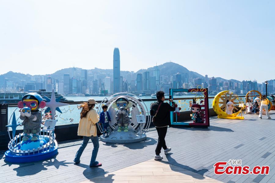 The figure exhibition event "MOLLY's Shining Journey—Tracing the Path of Starlight" debuted at Tsim Sha Tsui, Hong Kong, Monday. A 7-meter-tall statue of "MOLLY", incorporating elements of the Year of the Horse and representing Pop Mart's iconic IP, appeared alongside 20 other "MOLLY" statues, overlooking Victoria Harbour and adding festive cheer to Spring Festival celebrations.