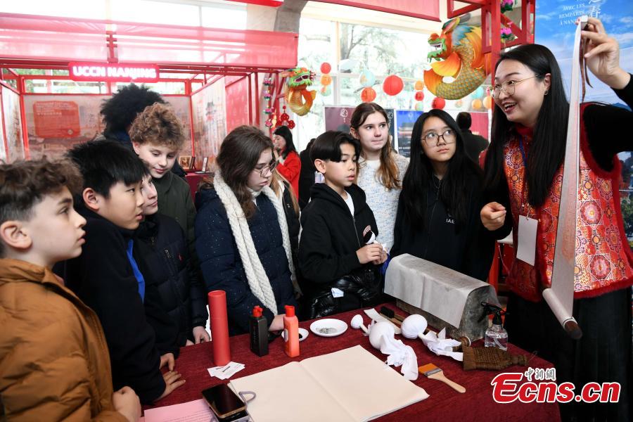 Local French children experience Spring Festival culture during a Spring Festival event at UNESCO headquarter in Paris, France on Feb. 10, 2026. (Photo: China News Service/Li Yang)