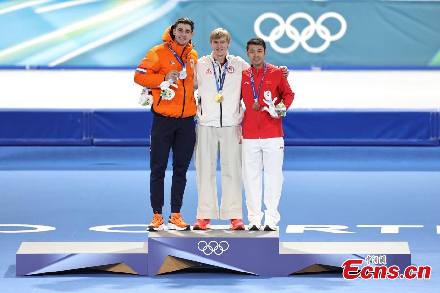 Ning Zhongyan of China poses for a photo during the award ceremony of the men's 1,000m speed skating at the Milan-Cortina 2026 Olympic Winter Games in Milan, Italy, Feb. 11, 2026. (Photo: China News Service/Jiang Qiming)