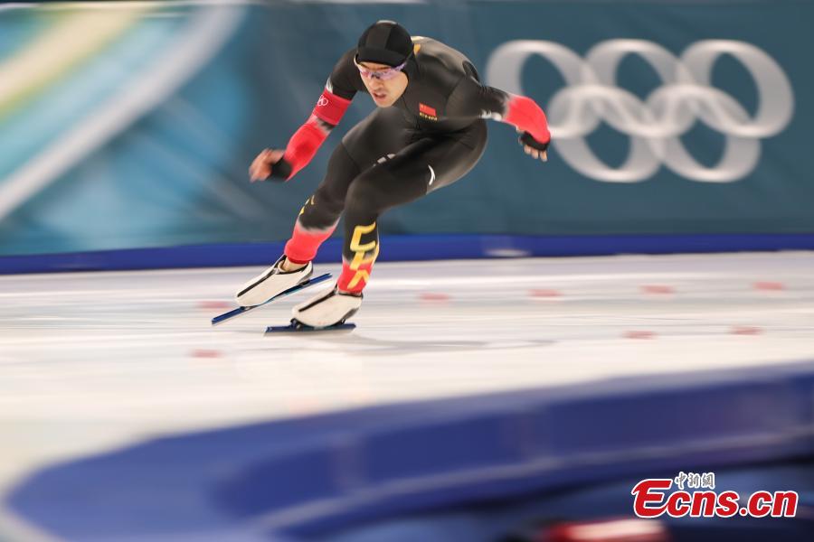 China's Ning Zhongyan is in action in the men's 1,000m speed skating final at the Milan-Cortina 2026 Olympic Winter Games in Milan, Italy, Feb. 11, 2026. (Photo: China News Service/Jiang Qiming)