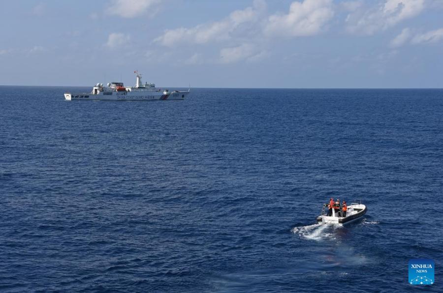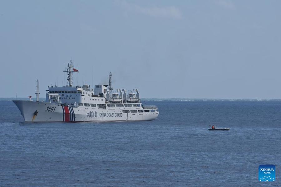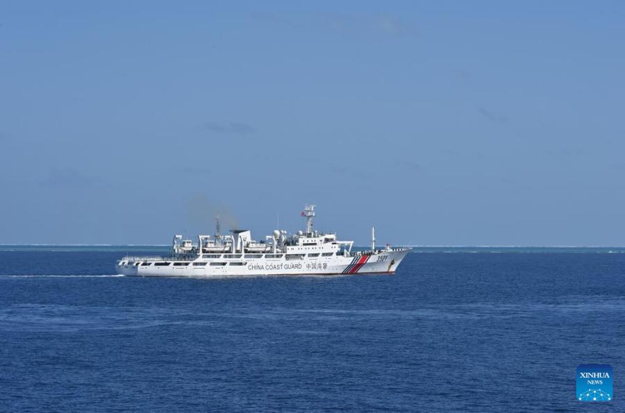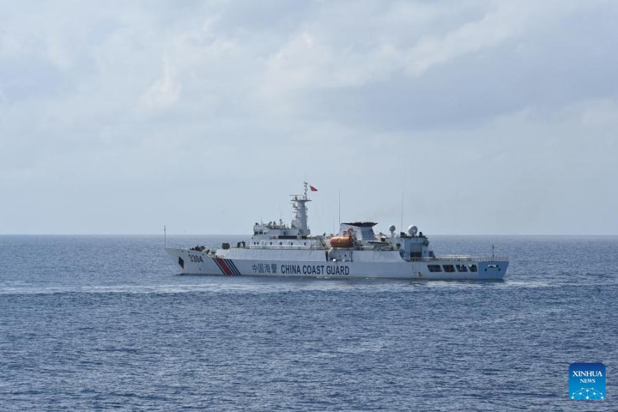 The China Coast Guard (CCG) vessel Zhongsha conducts a law enforcement drill in the territorial waters of China's Huangyan Dao on Feb. 4, 2026. (Photo by Zhai Yifan/Xinhua)