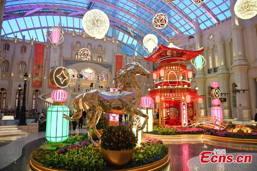 Horse-themed Chinese New Year decorations are displayed at MGM Cotai Skyloft Square in Macao on February 13, 2026. (Photo: China News Service/Zheng Jiawei)