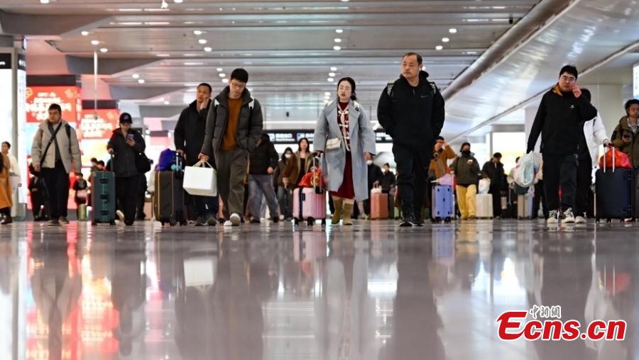 Passengers crowd Beijing North Railway Station in Beijing as they return from their Spring Festival holiday journeys on Feb. 23, 2026, which marks the last day of the holiday. (Photo: China News Service/Jia Tianyong)