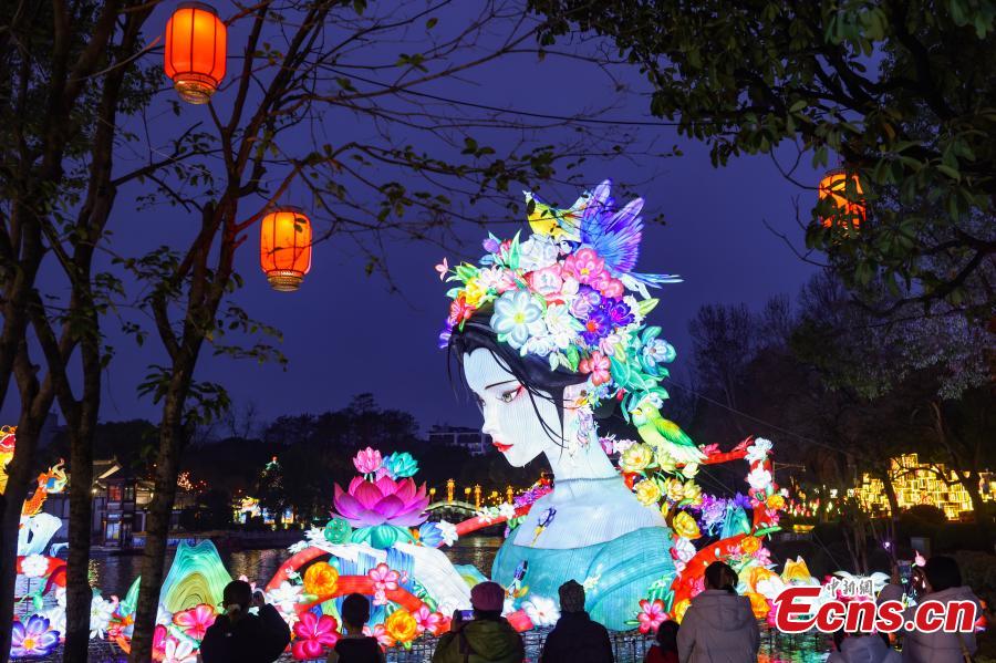 Visitors admire colorful lantern displays in Nanjing City, Jiangsu Province, Feb. 27, 2026. As the Lantern Festival approaches, the ancient city is illuminated with dazzling lights. (Photo: China News Service/Yang Bo)