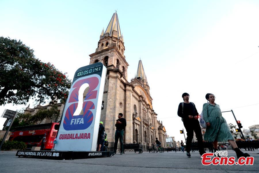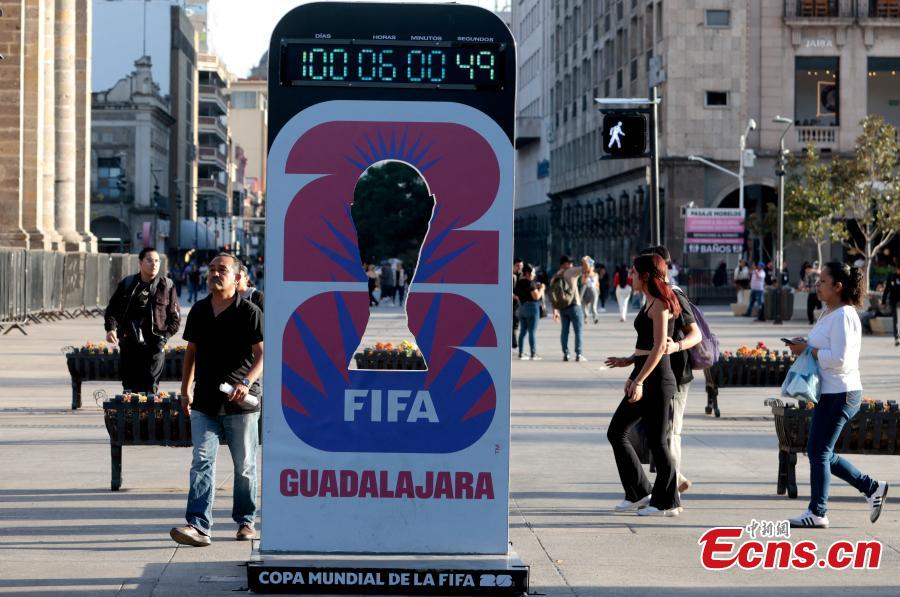 A countdown clock set up in a public square in Guadalajara, Mexico on March 2, 2026 shows that 100 days remain until the start of the 2026 FIFA World Cup. (Photo provided to China News Service)