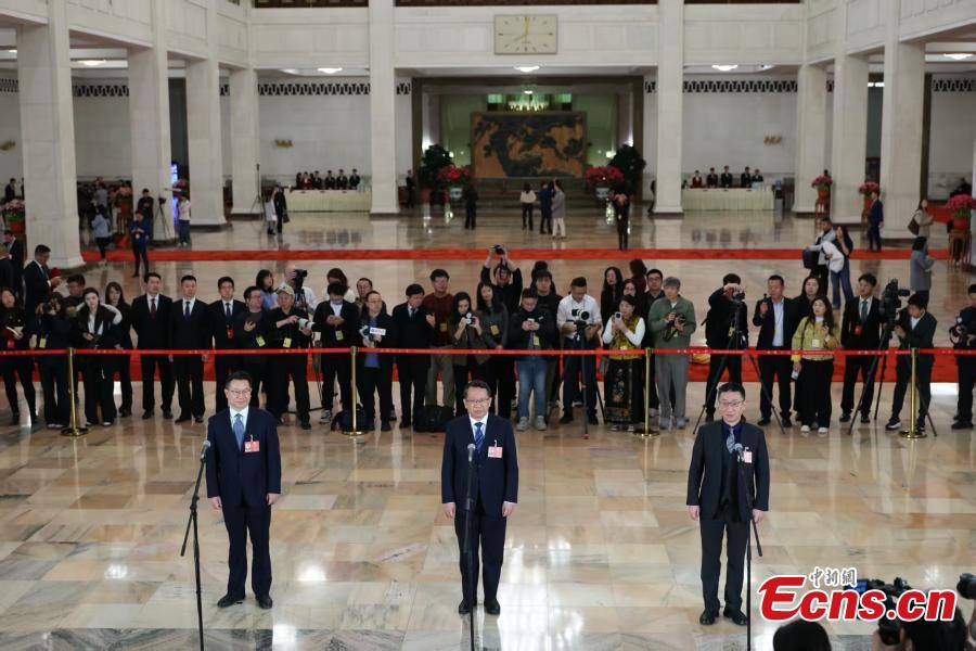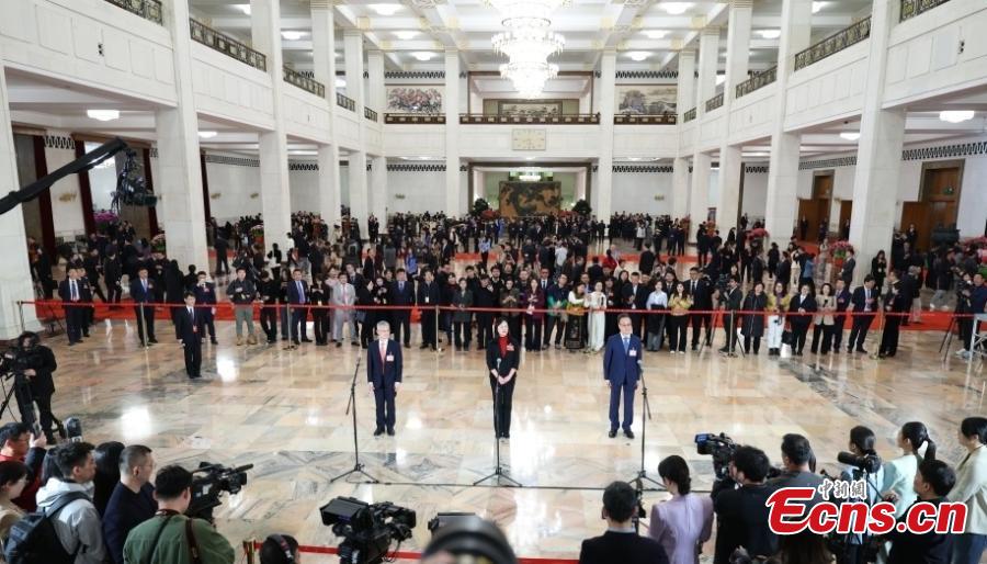 Members of the 14th National Committee of the Chinese People's Political Consultative Conference (CPPCC) attend a group interview ahead of the closing meeting of the fourth session of the 14th CPPCC National Committee at the Great Hall of the People in Beijing, capital of China, March 11, 2026. (Photo: China News Service/Tong Yu)