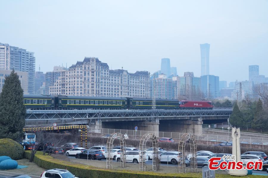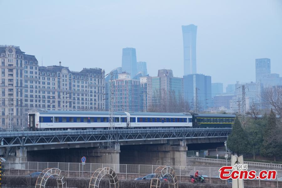 A passenger train K27 with cross-border service to Pyongyang, the Democratic People's Republic of Korea (DPRK) leaves Beijing, China, March 12, 2026. (Photo: China News Service/Zhang Xiangyi)