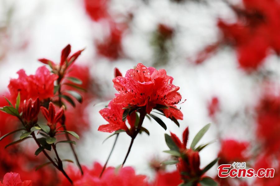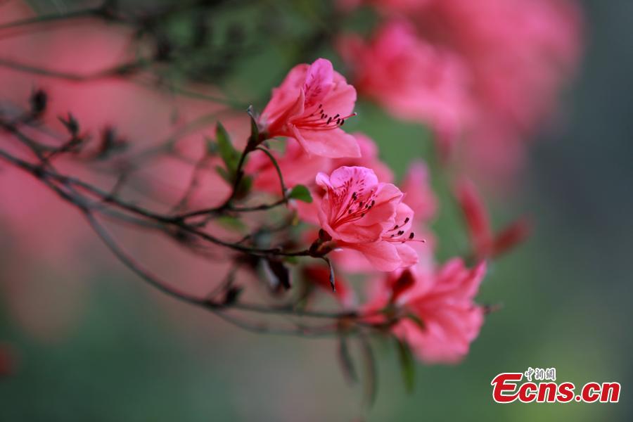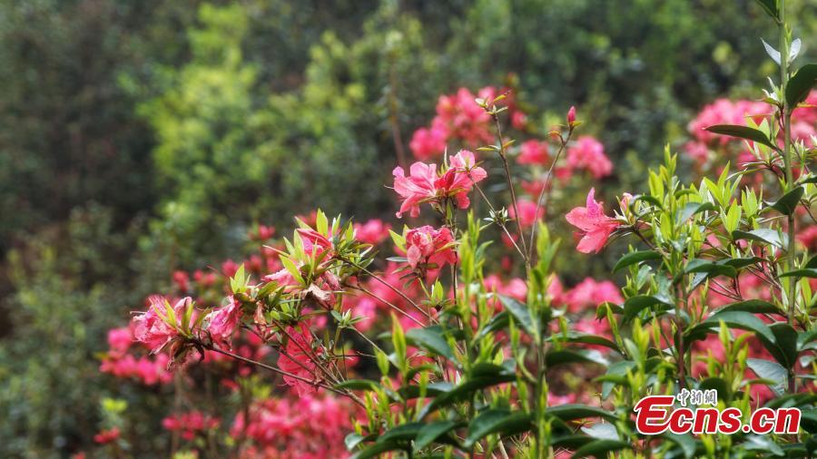 Vibrant azaleas blossom in the Tongyong Village of Chetian Village, Sanjiang Dong Autonomous County, Guangxi Zhuang Autonomous Region, March 27, 2026. (Photo/China News Service)