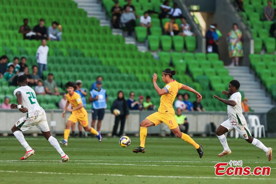 Behram Abduweli (in yellow) of China competes during the FIFA Series 2026 International Friendly Match between China and Cameroon in Melbourne, Australia, March 31, 2026. (Photo: China News Service/Qi Andi)