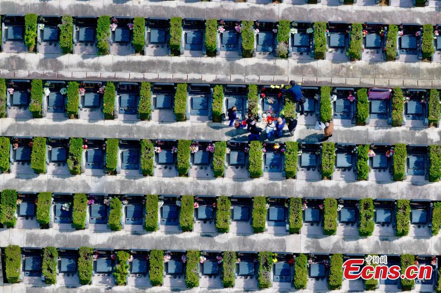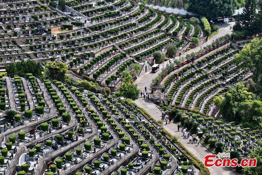 People pay tribute at the Sanshan Humanistic Memorial Park in Fuzhou, Fujian Province, April 2. 2026. (Photo: China News Service/Wang Dongming)