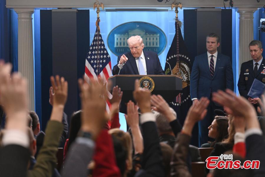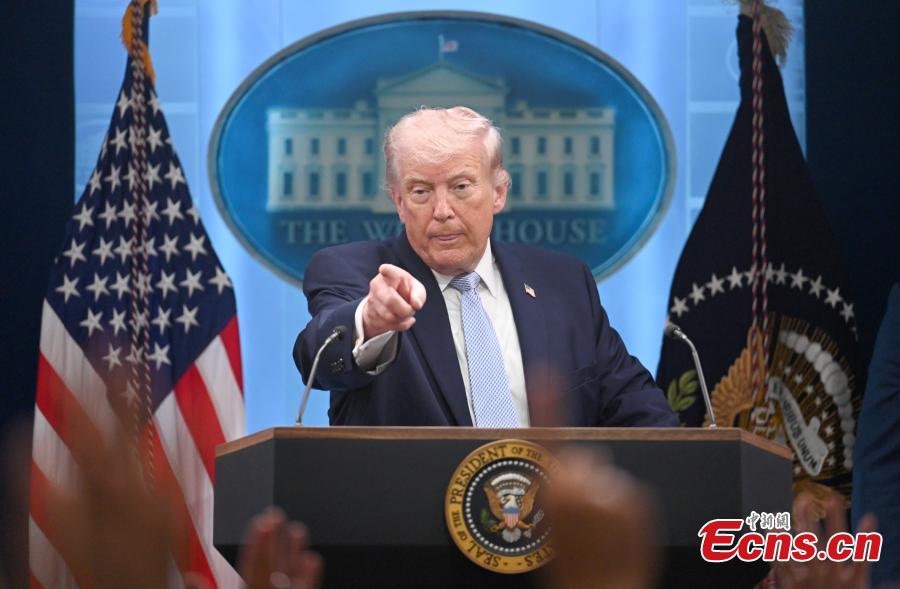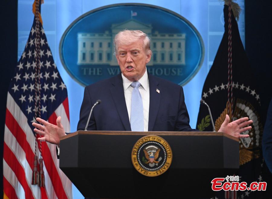 U.S. President Donald Trump speaks during a press conference at the White House in Washington, D.C., the United States, April 6, 2026. (Photo: China News Service/Chen Mengtong)
