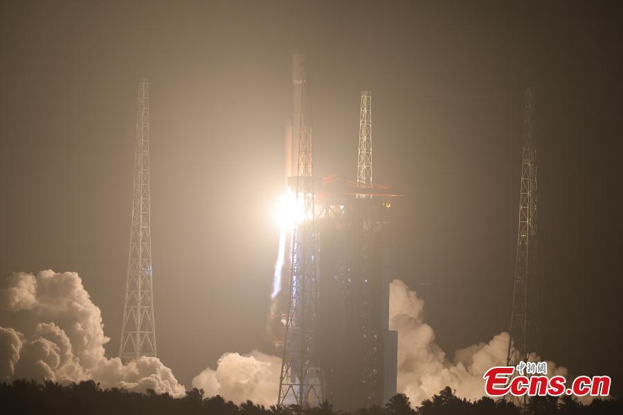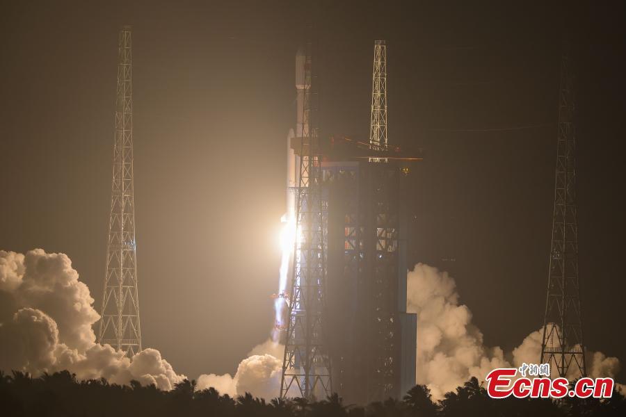 China launched a Long March-8 carrier rocket on Tuesday in the southern island province of Hainan, sending 18 internet satellites into space.