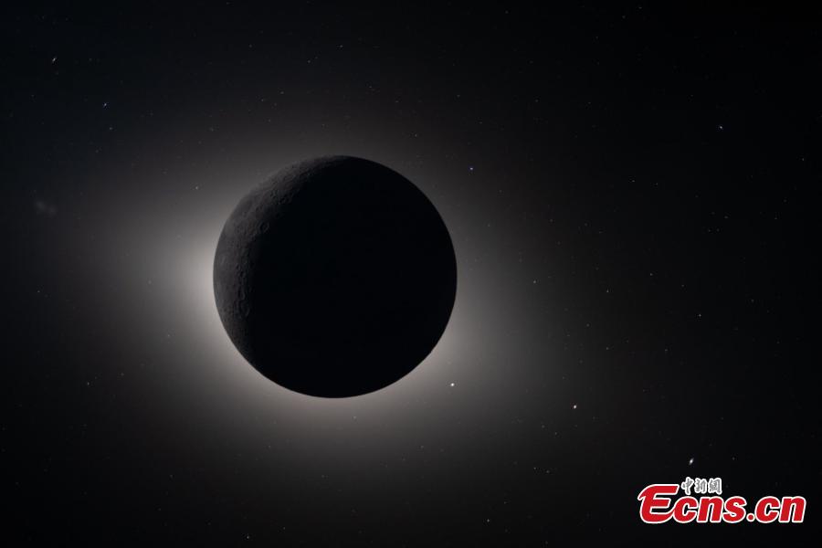 Photo released on April 7, 2026 shows that the moon completely blocks the sun, which is captured from the Orion spacecraft. (Photo/Agencies)