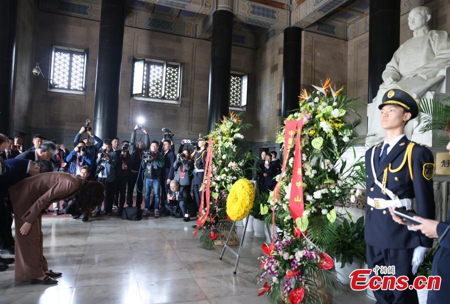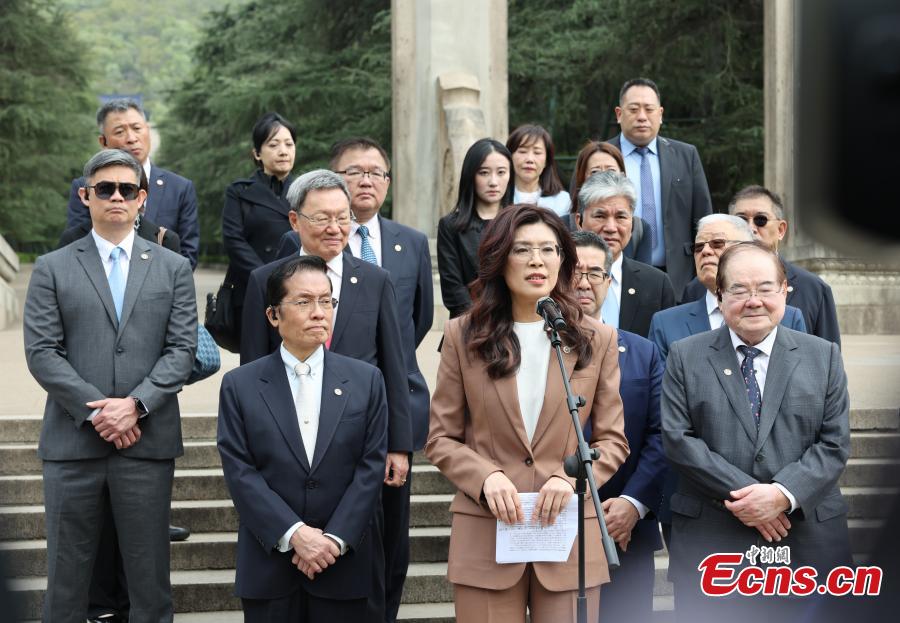 Cheng Li-wun, chairwoman of the Chinese Kuomintang (KMT) party, leads a KMT delegation to pay homage to the Sun Yat-sen Mausoleum in Nanjing, capital of east China's Jiangsu Province on April 8, 2026. (Photo/China News Service)