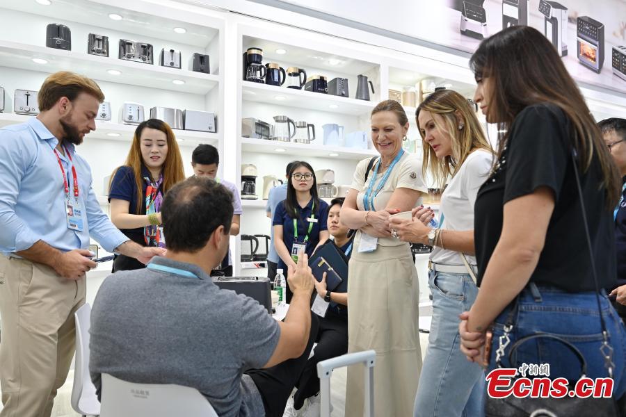 The smart home appliances exhibition area attracts overseas buyers at 139th edition Canton Fair, April 15, 2026. (Photo: China News Service/Chen Chuhong)