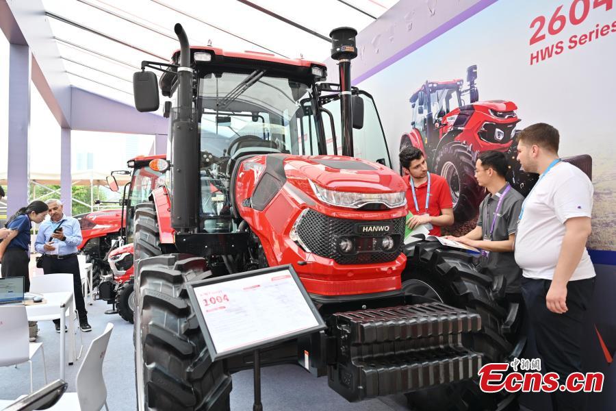 Agricultural machinery on display draws inquiries from overseas buyers in the agricultural equipment section at 139th edition Canton Fair, April 15, 2026. (Photo: China News Service/Chen Chuhong)