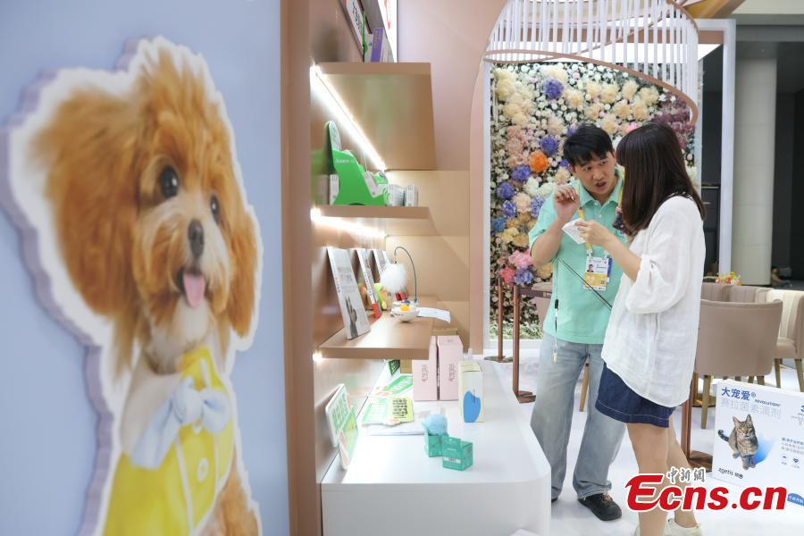 Visitors purchase pet medicines at the 6th China International Consumer Products Expo in Haikou, south China's Hainan Province on April 16, 2026. (Photo: China News Service/Yang Yuran)