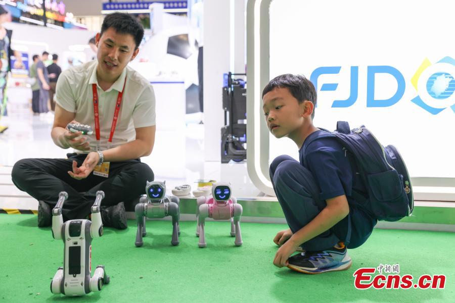Children watch a performance by an AI stunt robotic dog at the 6th China International Consumer Products Expo in Haikou, south China's Hainan Province on April 16, 2026. (Photo: China News Service/Yang Yuran)