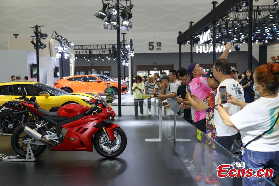 A ZXMOTO 820RR draws attendees at the 6th China International Consumer Products Expo in Haikou, south China's Hainan Province on April 16, 2026. (Photo: China News Service/Yang Yuran)