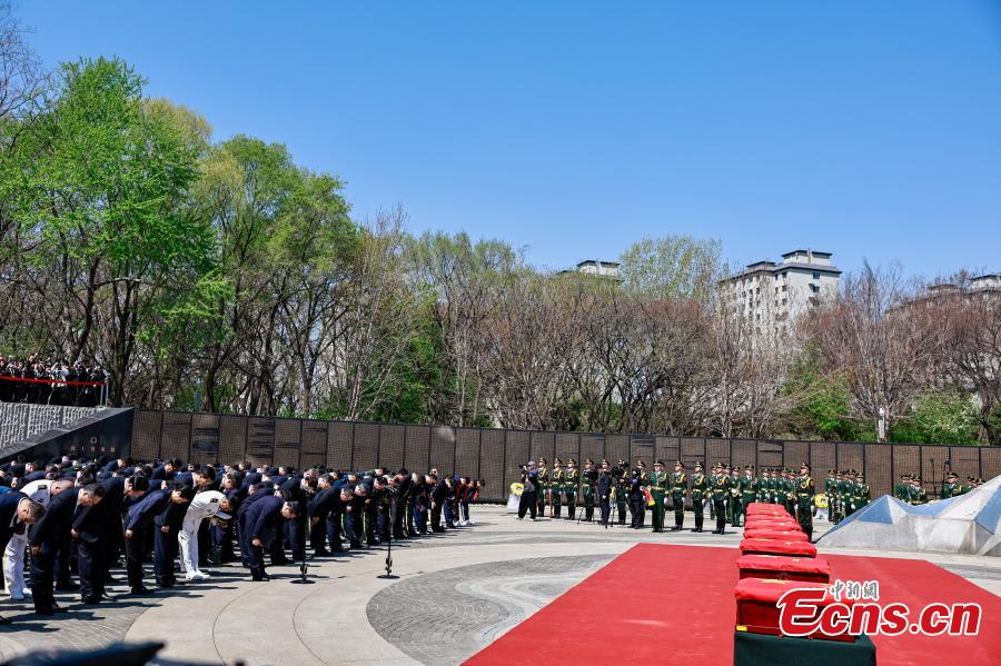 A burial ceremony for the remains of 12 Chinese People's Volunteers (CPV) martyrs is held at the CPV martyrs' cemetery in Shenyang, northeast China's Liaoning Province, April 23, 2026. (Photo: China News Service/Yu Haiyang)