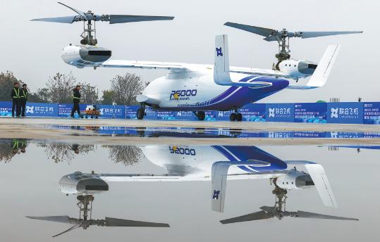 A six-ton tiltrotor unmanned aerial vehicle completed its maiden flight in Deyang, Sichuan province, on Sunday, marking a new step in the country's ambitions in advanced vertical-lift aviation. (YIN GANG/FOR CHINA DAILY)