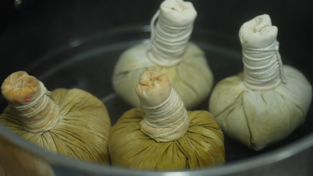 After examining him, a doctor prescribed tuoca therapy from Dai medicine, a technique in which specially prepared herbal powder is steamed in a cloth bag and gently dragged (tuo) and pressed (ca) along the muscles and meridian pathways of the body over the affected areas to relieve pain.