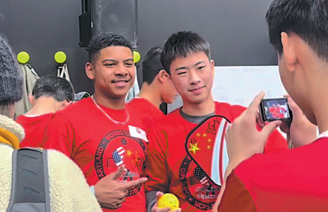 Students from China and the U.S. take part in the first U.S.-China Youth Pickleball Friendship Tournament in Montgomery County, Maryland, on Saturday. Photo/CHINA DAILYShoes squeaking on the court, plastic balls popping as they hit rackets, the crowd cheering after a score — not the typical sound of international relations. Students from China and the United States were doing just that in Rockville, Maryland, on Saturday, for the inaugural U.S.-China Youth Pickleball Friendship Tournament.