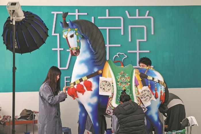 Artisans of the Clay Figure Zhang studio paint on a Year of the Horse sculpture in Tianjin in February. (SUN FANYUE/XINHUA)