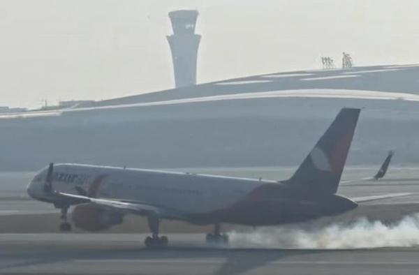 The Boeing 757-200 touched down safely at 4:51 pm local time. All 239 passengers and seven crew members on board were unharmed, the airport said.