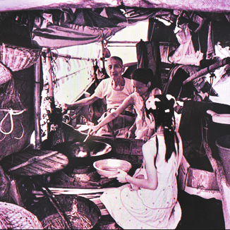 Boat dwellers cook on a boat in the 1980s. (XINHUA)