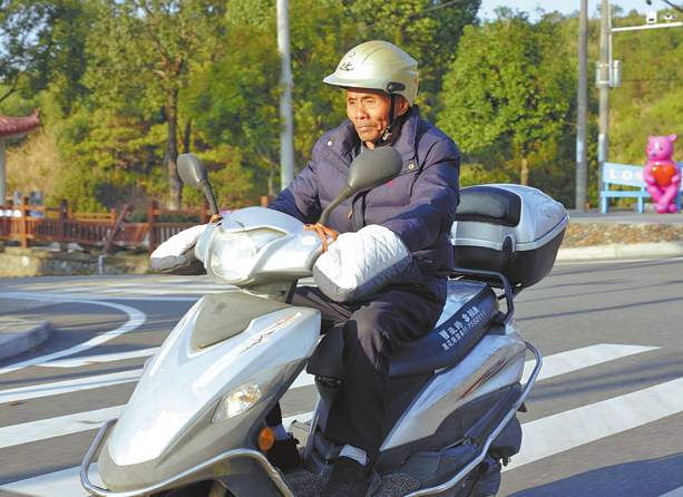 Gao Quanguo rides a motorcycle in Junying village on Jan 13. (PROVIDED TO CHINA DAILY)