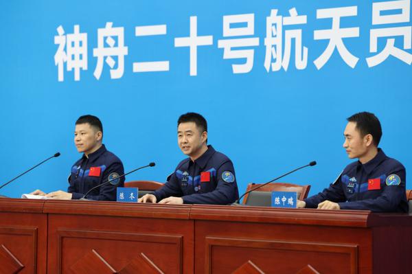 They made the remarks during a media event in Beijing on Friday, marking the first public appearance of the Shenzhou XX crew — mission commander Senior Colonel Chen Dong, and crew members Colonel Chen Zhongrui and Colonel Wang Jie — after returning to Earth in November.