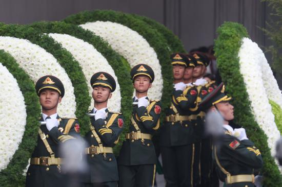 The 11th national memorial ceremony for Nanjing Massacre victims is held at the Memorial Hall of the Victims in Nanjing Massacre by Japanese Invaders in Nanjing, Jiangsu province, on Friday. (YANG BO/CHINA NEWS SERVICE)
