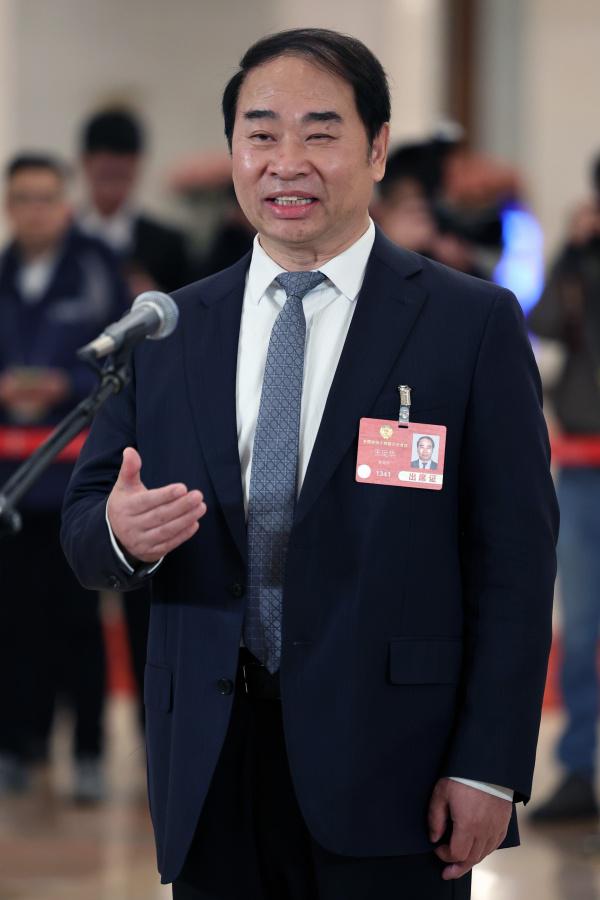 Wang Dinghua, a member of the 14th National Committee of the Chinese People's Political Consultative Conference, attends a group interview ahead of the second plenary meeting of the third session of the 14th CPPCC National Committee at the Great Hall of the People in Beijing, March 7, 2025. (Photo by Wang Jing/chinadaily.com.cn)