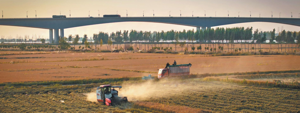Farmers gather harvested rice in a field in Dongying in early November. The once white, barren land has been transformed into high-yield fields. ZHENG XUDONG/FOR CHINA DAILY