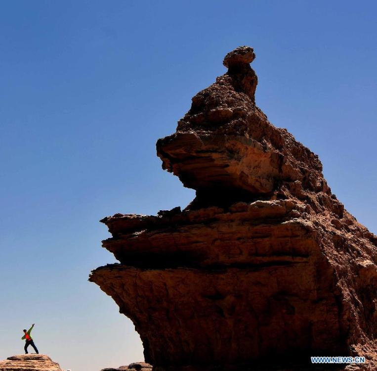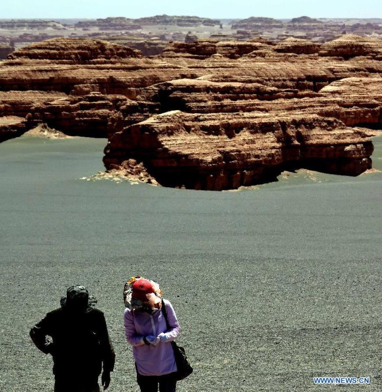 Tourists visit the Dunhuang Yardang National Geopark in Dunhuang, northwest China's Gansu Province, May 24, 2015. (Photo: Xinhua/Wang Song)