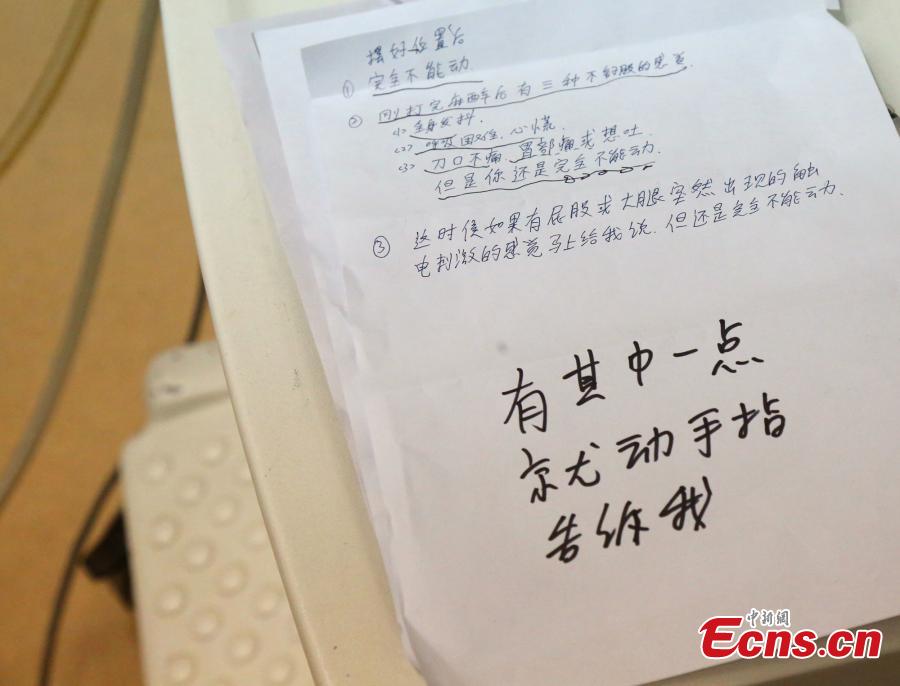 A doctor helps a woman give birth through written communication at a hospital in Yichang City, central China's Hubei Province, Dec. 30, 2015. Both the 21-year-old woman and her husband are deaf-mute. They met at a school for special education. (Photo: China News Service/Li Xiaoting)