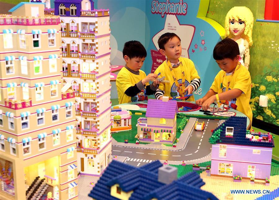 Children have fun in China's first LEGOLAND Discovery Center in east China's Shanghai, April 7, 2016. The center, which was the first of its kind in China, began a trial operation as over 3.9 million LEGO pieces simulating a mini world for children here on Thursday. (Photo: Xinhua/Chen Fei)