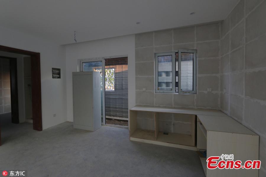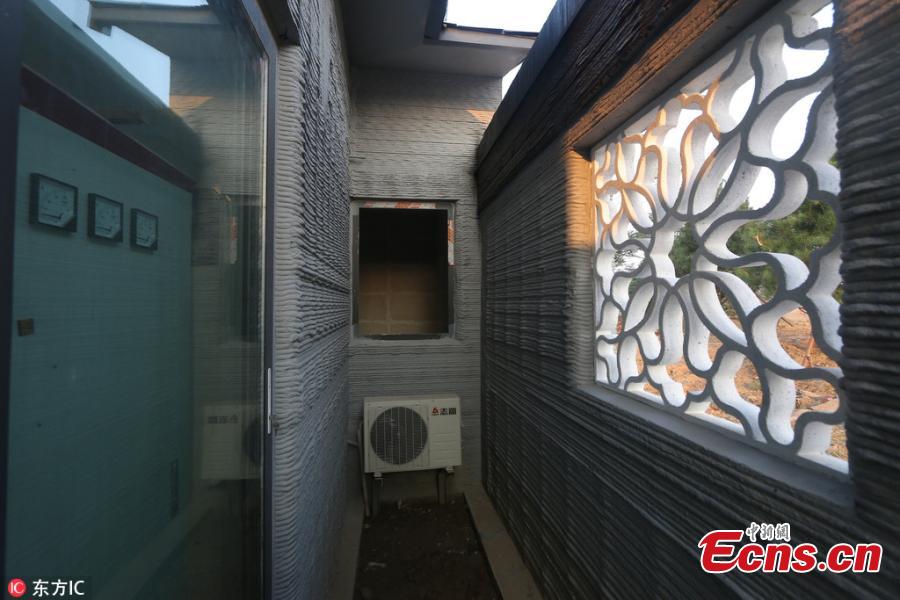 House made using 3D printing technology in Binzhou City, East China’s Shandong Province, Sept. 8, 2016. Construction combined 3D printing technology with concrete at the control of computer. The builder said the house is more cost effective and environmentally friendly than houses built in conventional ways. Equipped with an air conditioning system, it is ready for use. (Photo/IC)