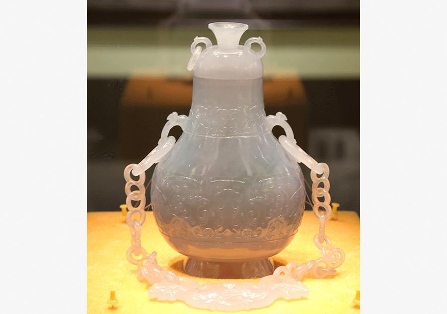 Jade pot, a gift from Chairman Mao Zedong to the 14th Dalai Lama in 1956. (Photo/China Daily)