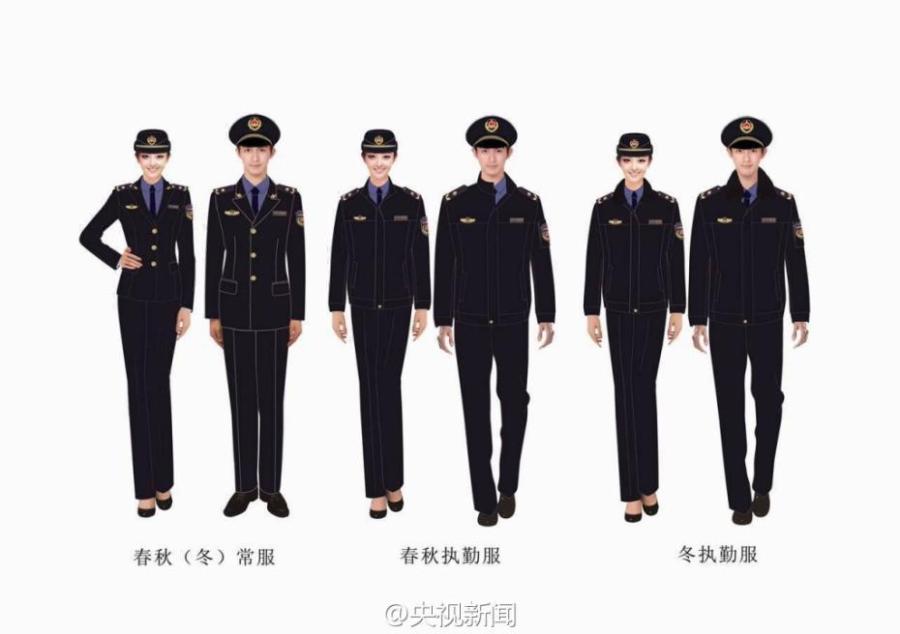 New uniforms for Chengguan, urban management and law enforcement officers, have been released by the Ministry of House and Urban-Rural Development and the Ministry of Finance. The uniforms, in navy blue and sky blue, will be put into use nationally by the end of this year. (Photo/Weibo of CCTV)