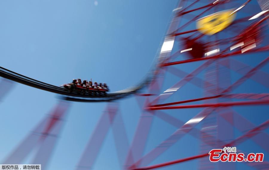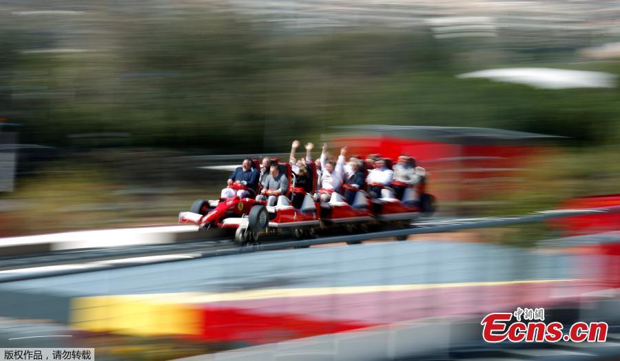 People ride in the "Red Force" roller coaster during the inauguration of Ferrari Land, at PortAventura resort, south of Barcelona, Spain April 6, 2017. (Photo/Agencies)