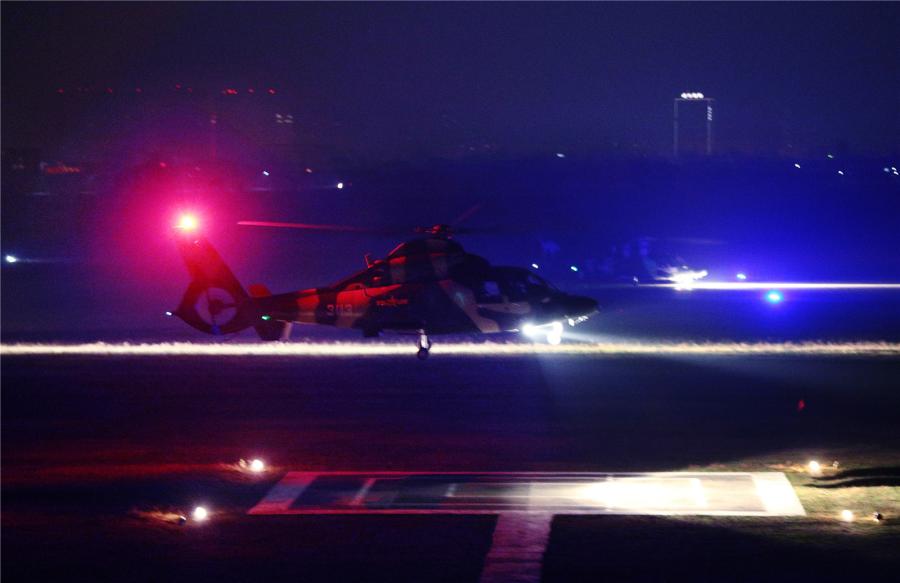 A WZ-9 helicopter attached to a helicopter group of the PLA Air Force Xi'an Flight College takes off for a sortie during a night flight training exercise at a military training base in southwest China's Sichuan Province in mid-March, 2017. (Photo/81.cn)