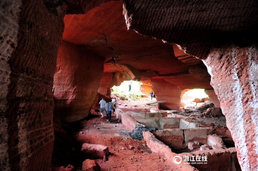 Pictures taken on April 18, 2017 show a sandstone cave discovered at Shetang Village in Lanxi City, East China’s Zhejiang Province. The artificial cavern has a floor area of 3,000 square meters. The purpose of the cave is unknown, but they are not far from the mysterious Longyou Caves that have clear man-made origins but no historical record. (Photo/zjol.com.cn)