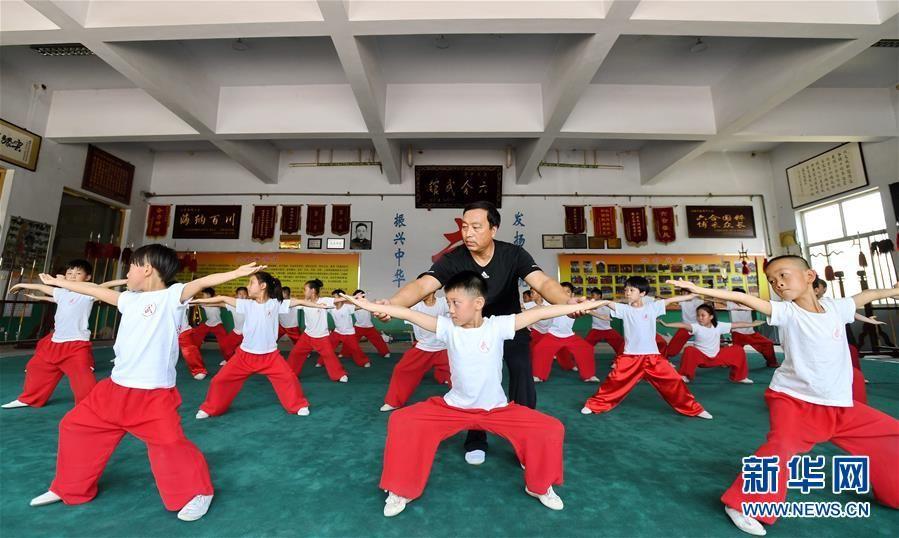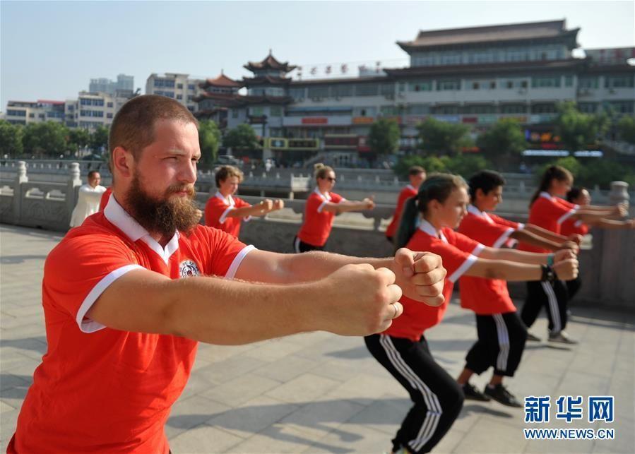 Photo shows wushu fans practicing on the Grand Canal bank in Cangzhou, north China's Hebei province, on July 12.(Photo/Xinhua)