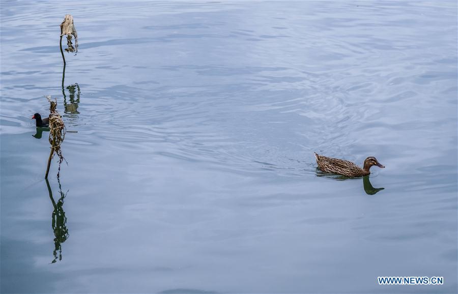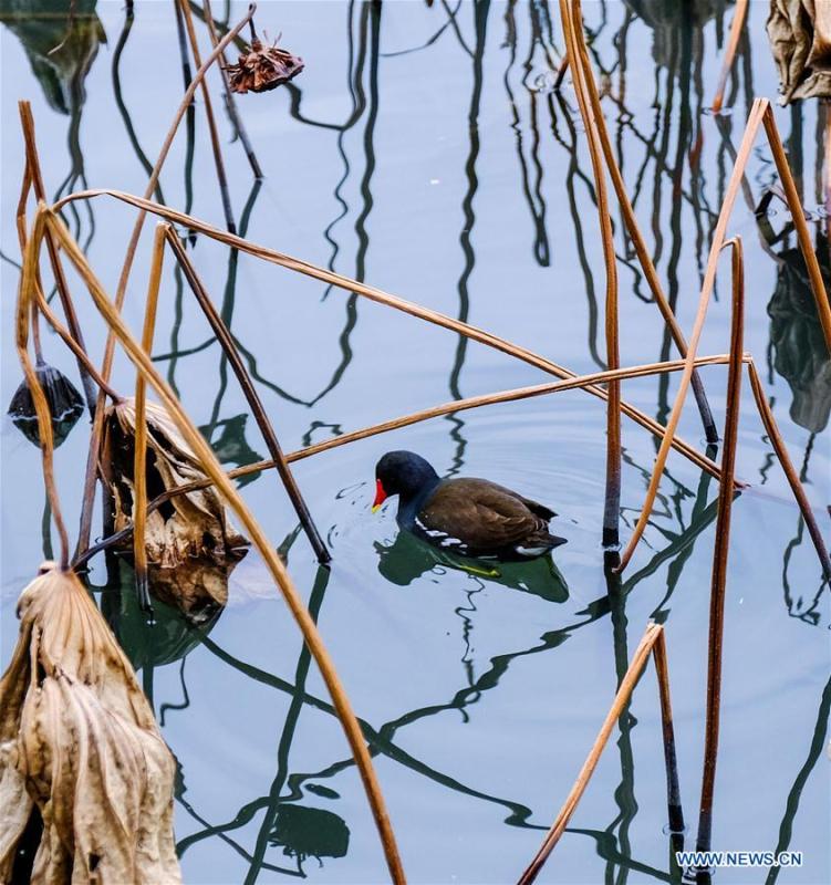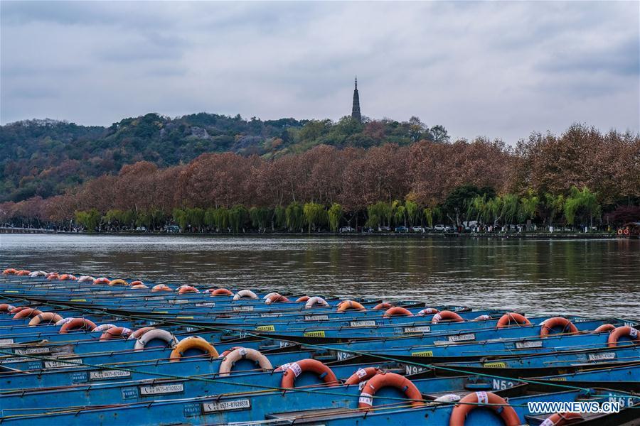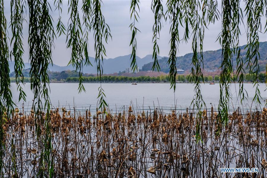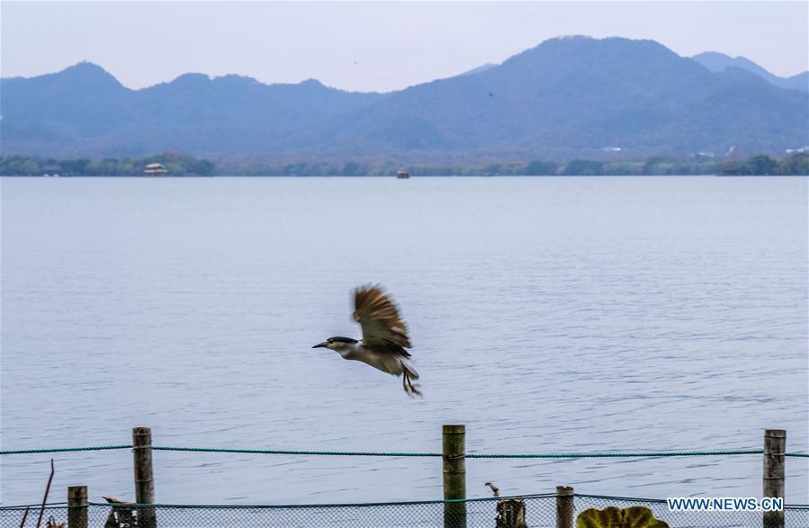 A bird is seen at the West Lake scenic spot in Hangzhou, capital of east China's Zhejiang Province, Dec. 13, 2017. (Xinhua/Xu Yu)