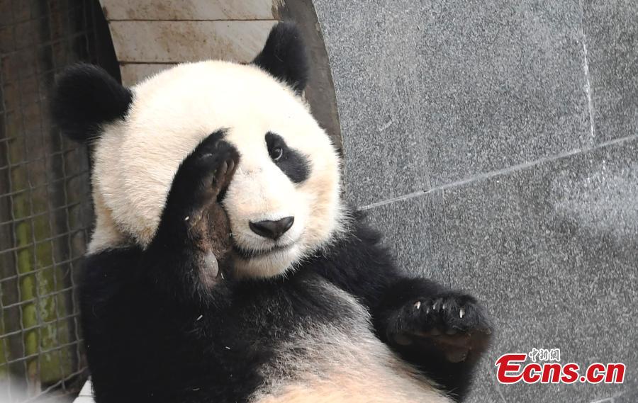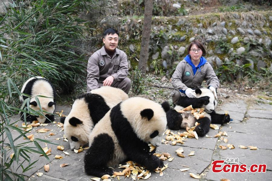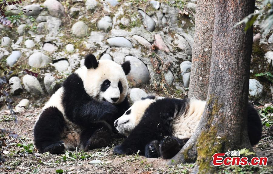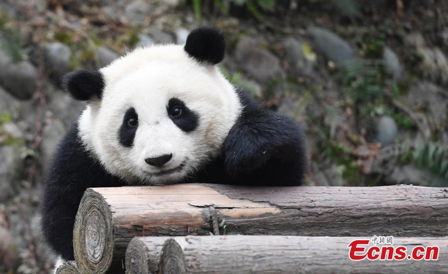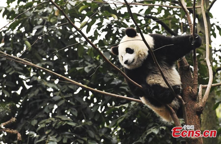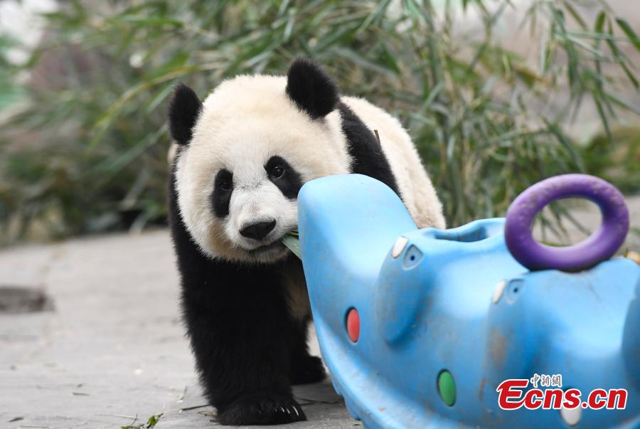Photo taken on Jan. 2 shows a panda in “panda kindergarten” at Bifengxia Base in Ya’an, Sichuan province. Seven baby pandas who were born in 2016 live happily there. (Photo: China News Service/An Yuan)