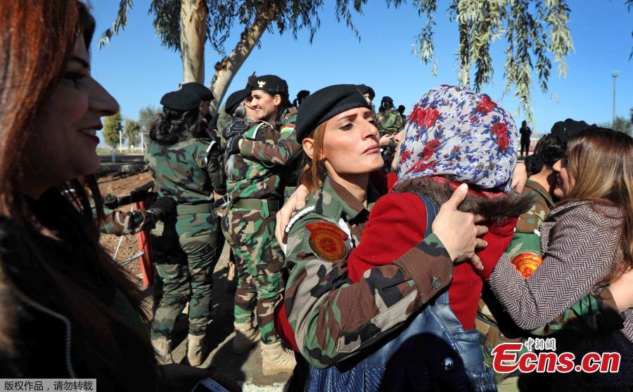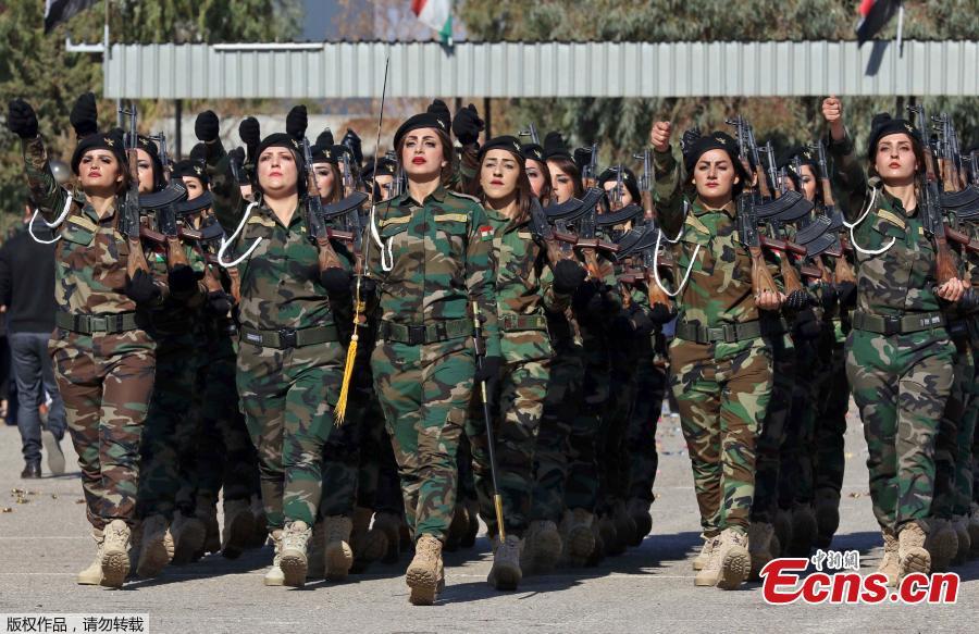 Iraqi Kurdish Peshmerga take part in a graduation ceremony at the Zakho military academy in the Iraqi Kurdish town of Zakho, some 500 kilometres north of Baghdad, on January 30, 2018. Some four-hundred eighteen male and female Peshmerga fighters completed their military training and graduated from the academy. (Photo/Agencies)