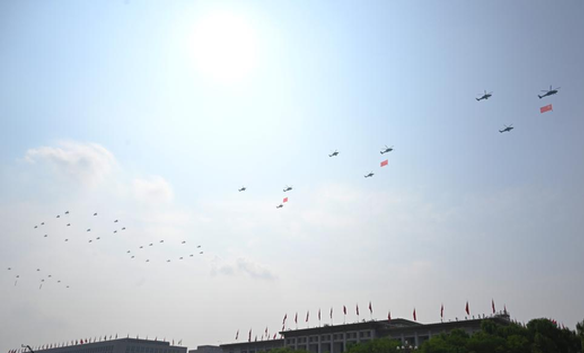 The formation of the Chinese People's Liberation Army (PLA) Air Force passed through Tian'anmen Square in Wednesday's V-Day military parade.